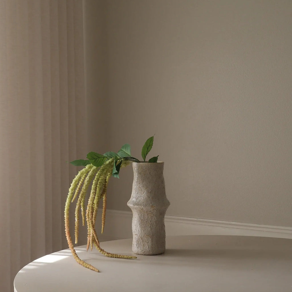 Die hellgrüne Botané Three Forks Amaranthus Blume beeindruckt mit herabhängenden, länglichen Blütentrauben in sanftem Grün, die dezent in goldene Töne übergehen. Die leicht strukturierte, leicht samtige Oberfläche verstärkt ihren natürlichen Look, während die fließende, dennoch strukturierte Form Bewegung ins Arrangement bringt. Die 133 cm hohen Stiele werden von einigen breiten grünen Blättern ergänzt – ideal für Sträuße, Gestecke oder als dekorativer Blickfang in deinem Zuhause.