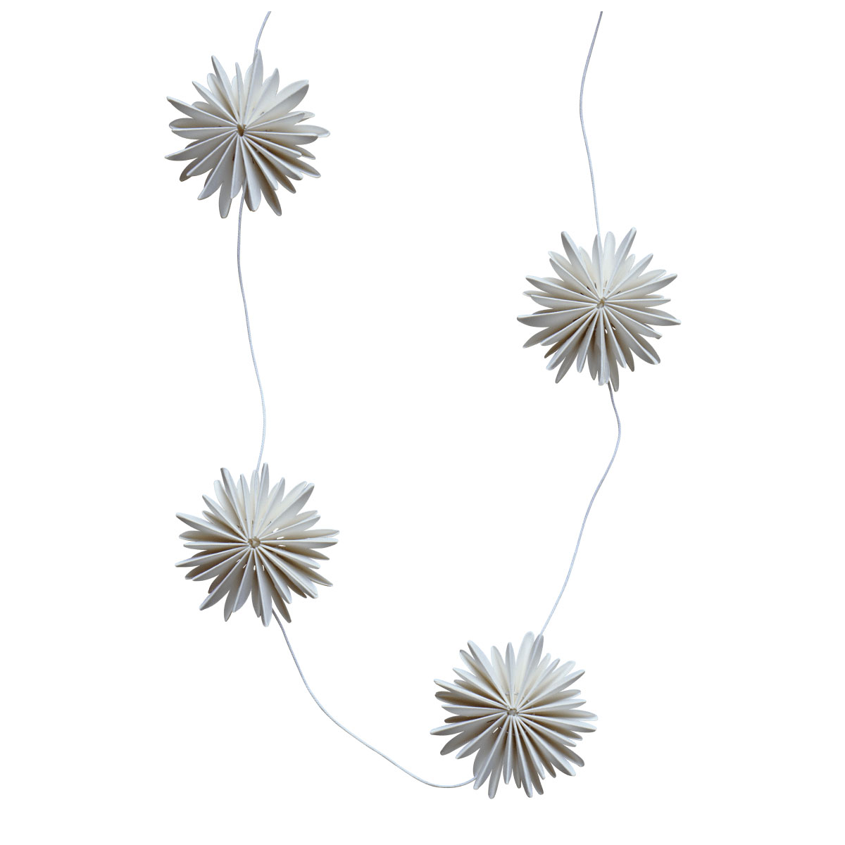 Die DBKD Girlande Flocke White ist 300 cm lang und an ihr sind vierzehn Flocken mit Ø 5 cm aufgefädelt. Mach dein Zuhause bereit für die schönste Zeit des Jahres – mit einer Girlande, die Gemütlichkeit und Weihnachtsfreude verbreitet!