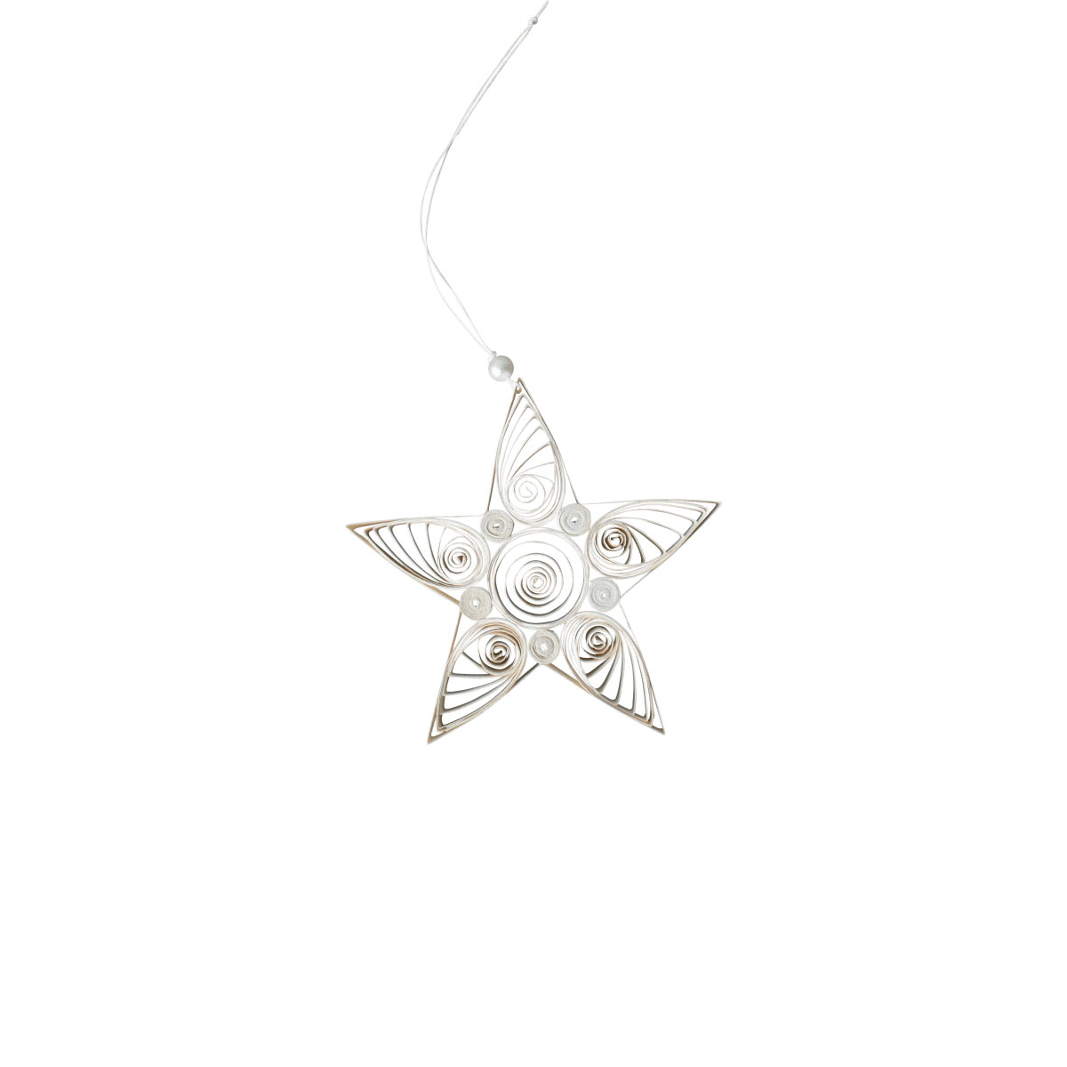 Der wunderschöne DBKD Papier-Stern Klein Weiß misst ca. Ø 10,5 cm (ohne Schnur). Der aufwändig ausgearbeitete Ornament-Stern in leichtem Cremé-Weiß ist aus festem Papier und zum Aufhängen für deinen Weihnachtsbaum bzw. Tannenzweig.