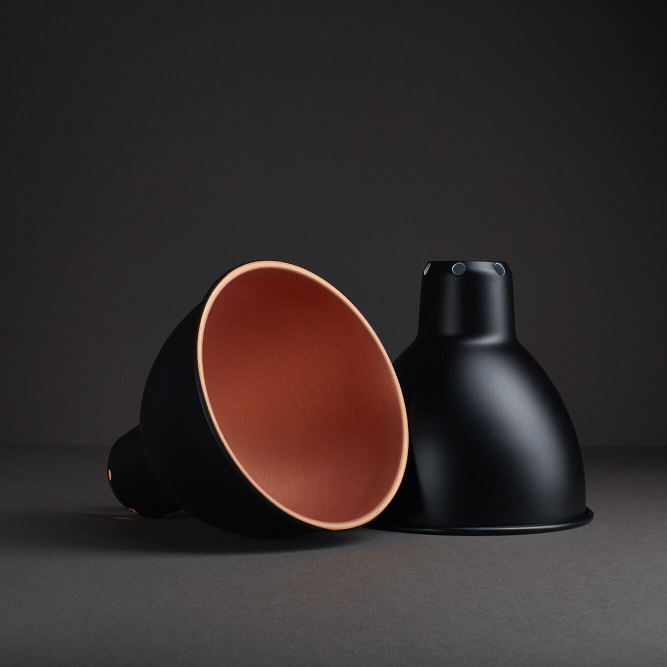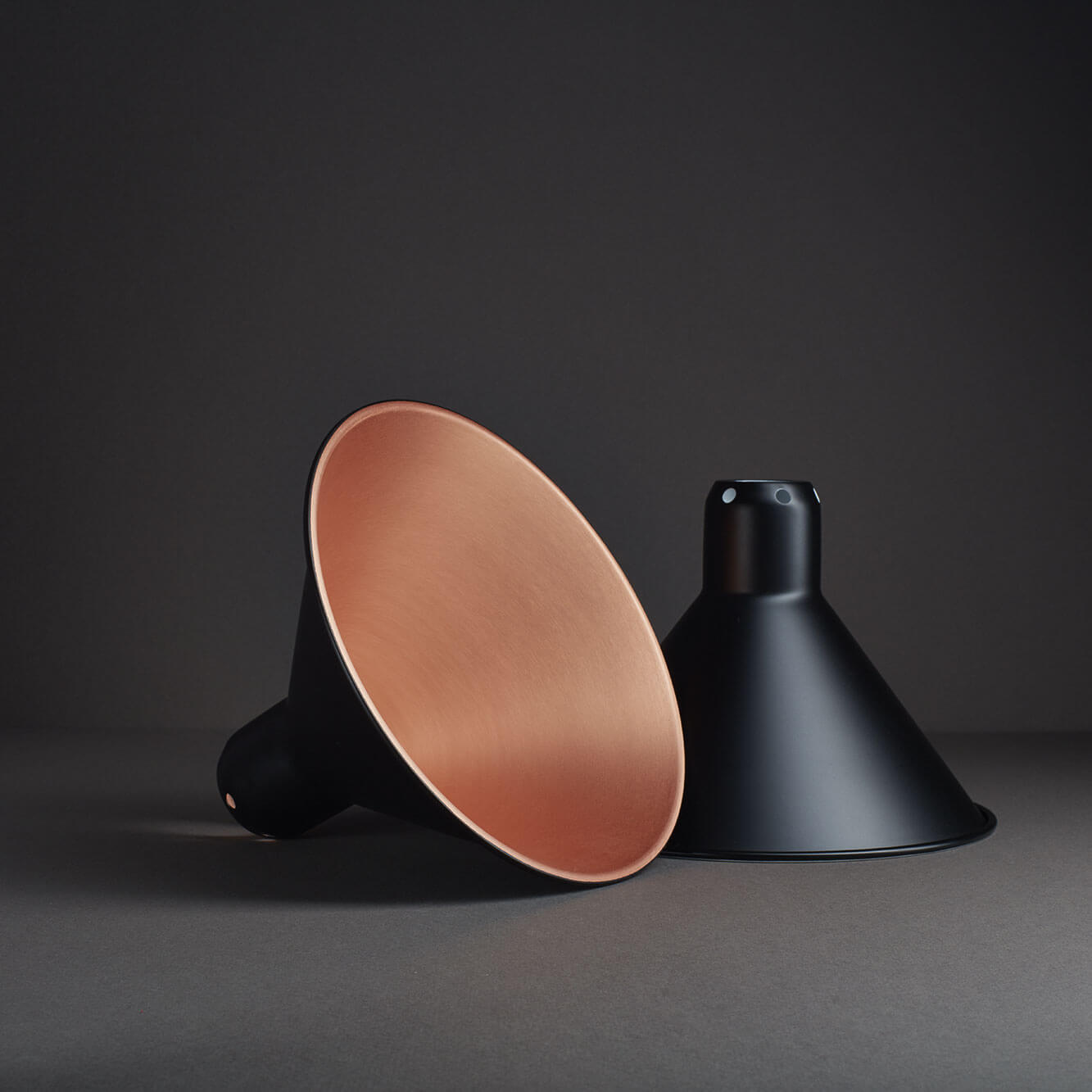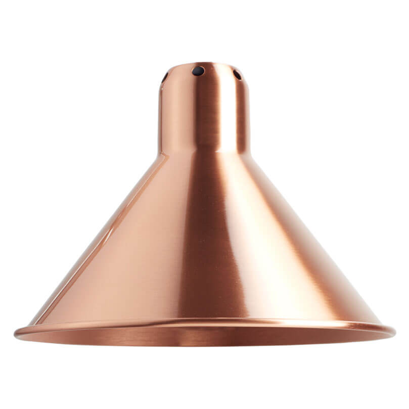 Bei uns kannst du die Lampenschirme für die de Gras No. 214 und 210 in verschiedenen Varianten bestellen. Der Schirm ist dabei entweder konisch (Ø 21 cm) oder rund (Ø 14 cm) und in 6 Farbvarianten verfügbar: Schwarz (innen weiß), Schwarz (innen kupferfarben), Weiß (innen weiß), Weiß (innen kupferfarben), Kupfer (komplett), Messing (komplett).