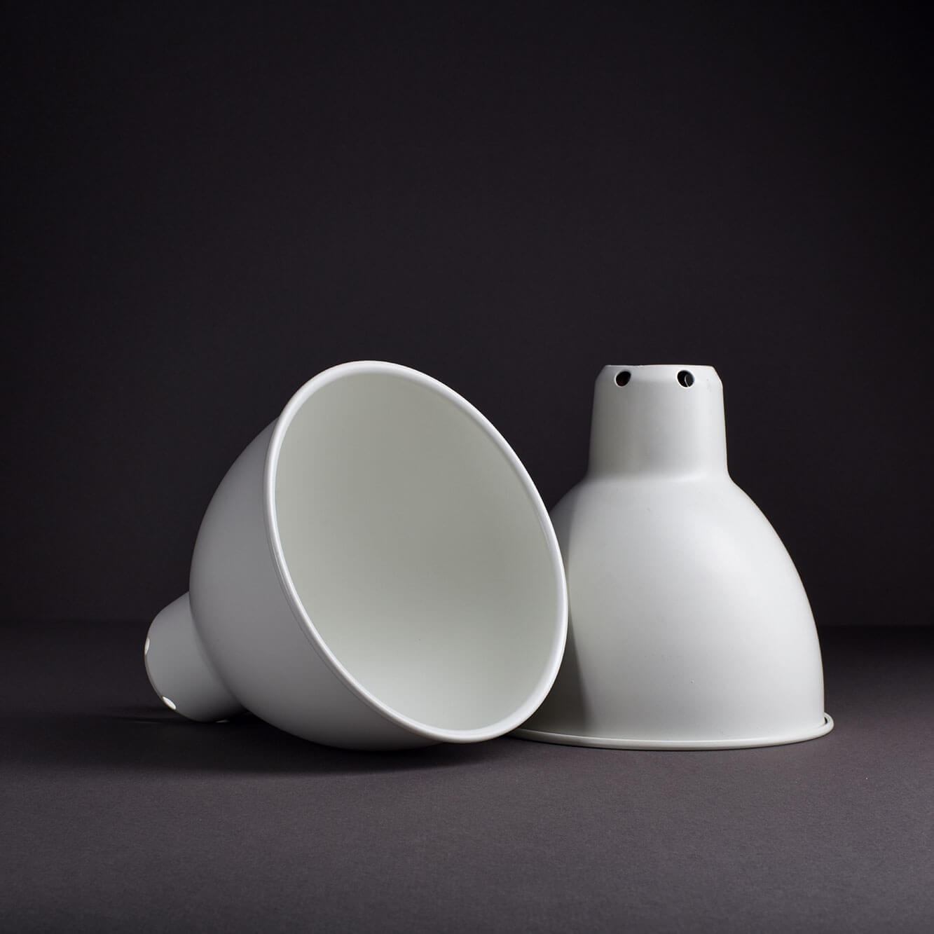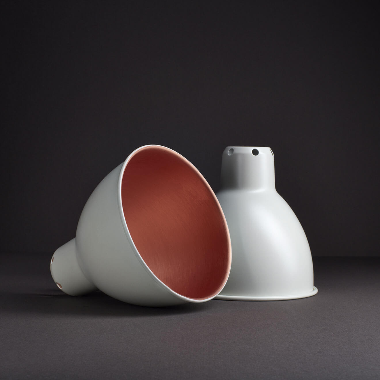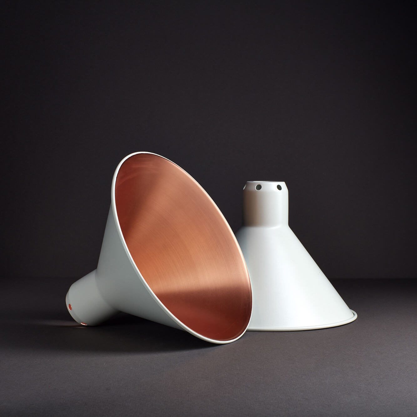Bei uns kannst du die Lampenschirme für die de Gras No. 214 und 210 in verschiedenen Varianten bestellen. Der Schirm ist dabei entweder konisch (Ø 21 cm) oder rund (Ø 14 cm) und in 6 Farbvarianten verfügbar: Schwarz (innen weiß), Schwarz (innen kupferfarben), Weiß (innen weiß), Weiß (innen kupferfarben), Kupfer (komplett), Messing (komplett).