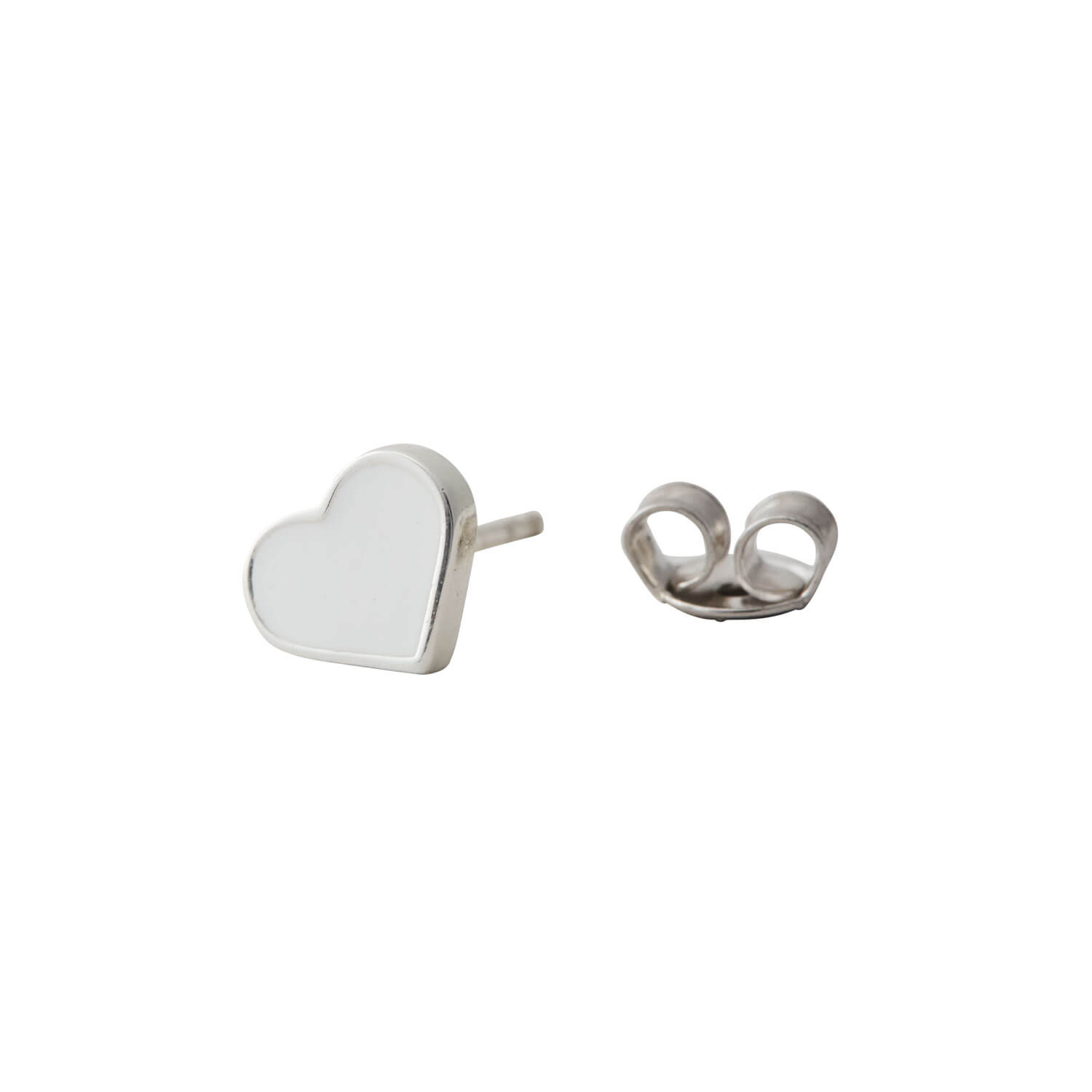 Design Letters Ohrstecker Emaille Herz Weiß Silber