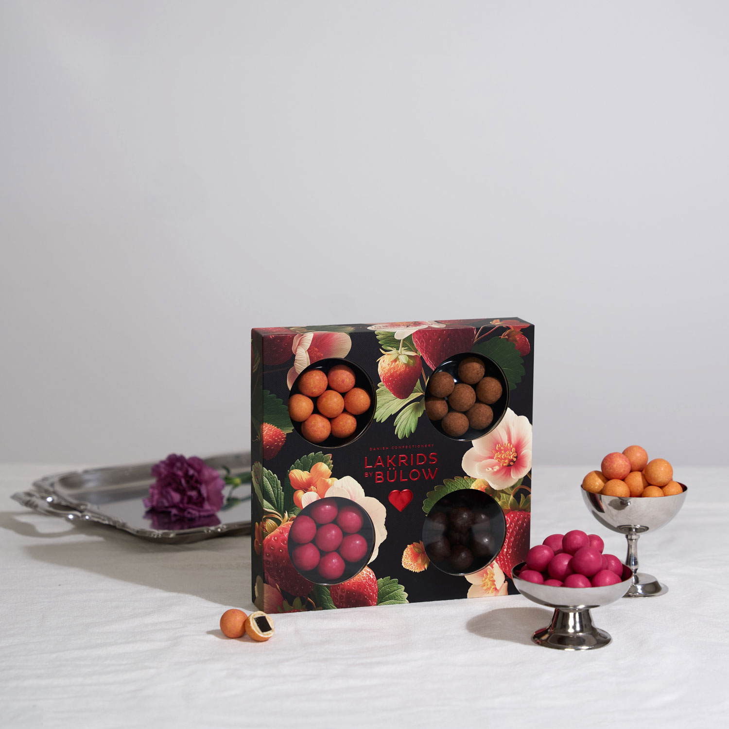 Die Lakrids LOVE Selection Box Small ist das perfekte Geschenk für deine Liebsten. Perfekt für alle, die ein bisschen mehr Liebe verdient haben. Sei es ein Familienmitglied, dein Partner oder einfach du selbst. Spüre die Liebe in jedem Bissen mit STRAWBERRIES & CREAM, PEACHES, F – DARK & SEA SALT und D – SALT & CARAMEL.