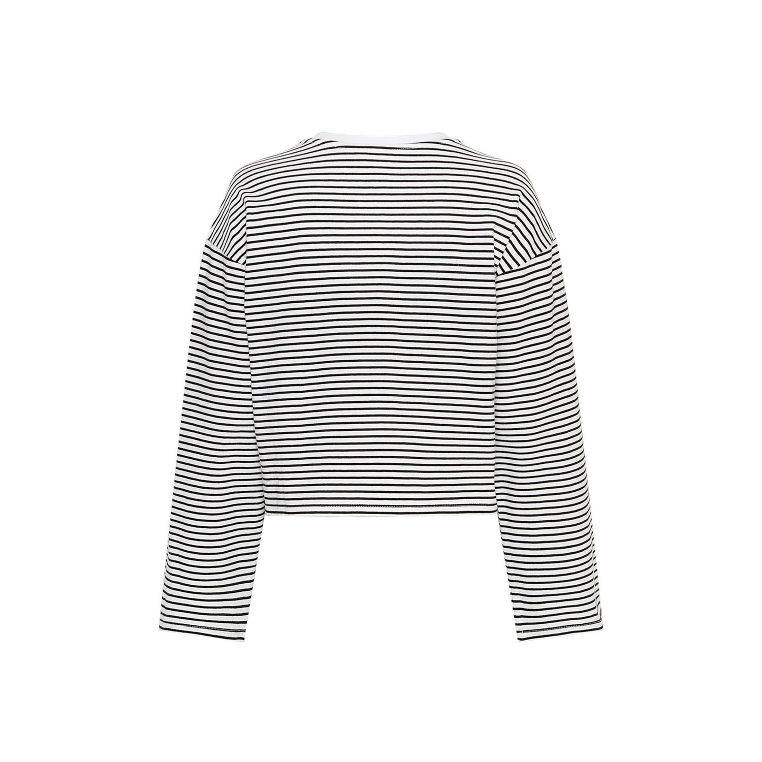 Den Moss Copenhagen Baumwoll-Pullover Streifen Egret Black namens Krestiane gibt es in 4 Größen (XS-S, S-M, M-L, L-XL). Du kannst den Pulli super zu Hosen wie auch Röcken, mit Sneakern und Boots tragen. Er passt sich spielend leicht an. Der wunderschöne und vom Stoff (Baumwolle) sehr angenehme Longsleeve fällt lässig. Damit sorgt er für einen gemütlichen, aber keinesfalls langweiligen Look. Die Streifen sorgen für etwas Abwechslung, ohne dabei mit der Tür ins Haus zu fallen.