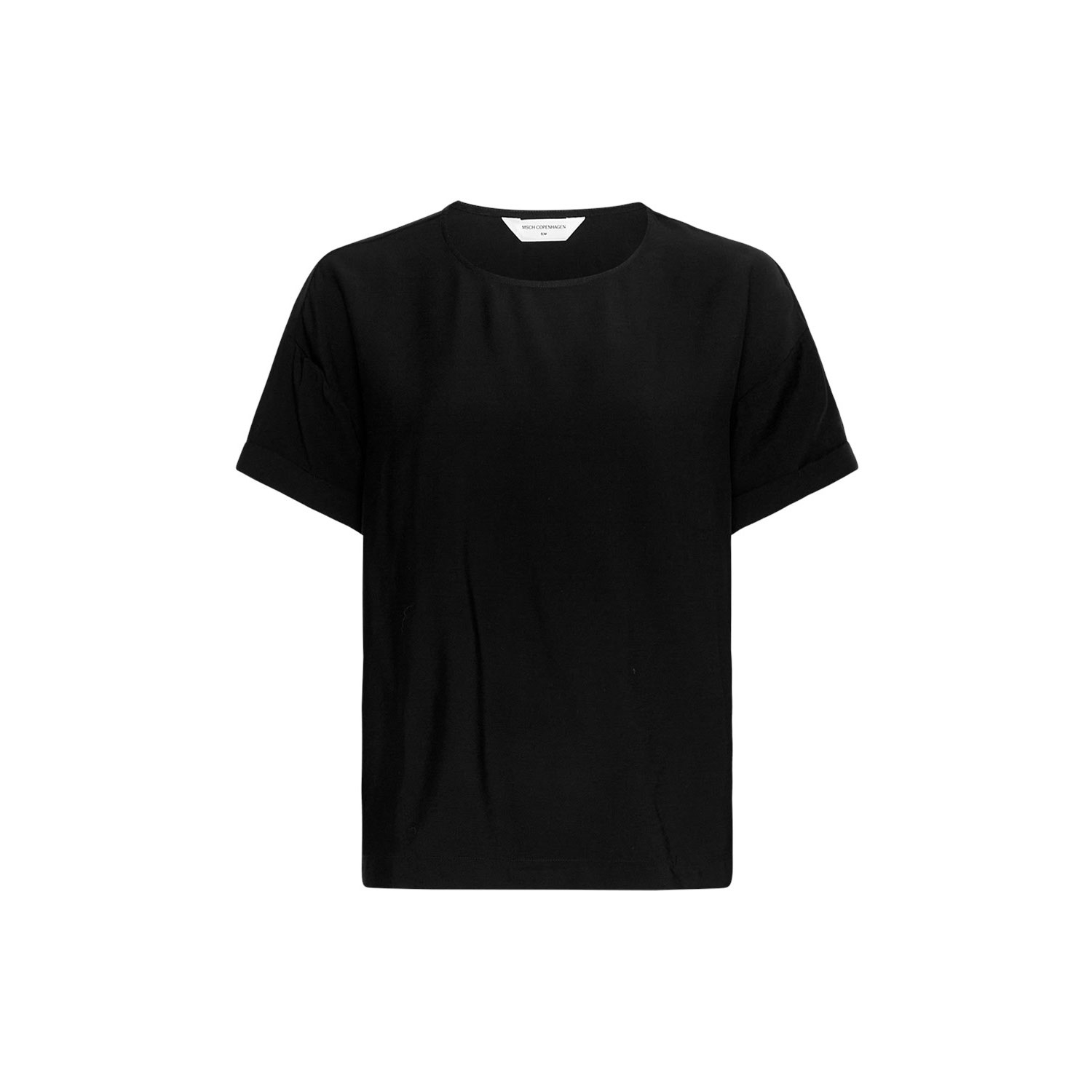 Moss Copenhagen Ecovero-Shirt Black mit umgeschlagenen Ärmeln