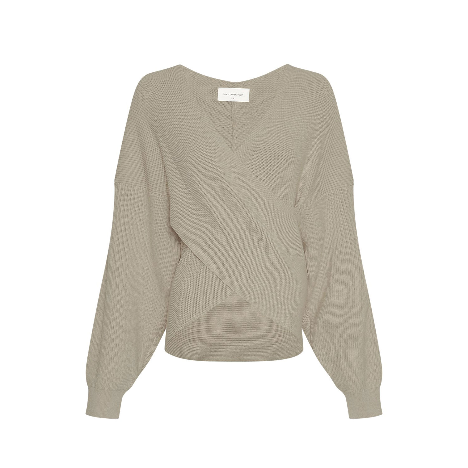 Den Moss Copenhagen Hope Wickel-Pullover Fog Melange namens Zinelle gibt es in 3 Größen (XS-S, S-M, M-L). Du kannst ihn super zu Hosen wie auch Röcken, mit Sneakern und Boots tragen. Durch das weiche Woll-Mix-Material kannst du dich richtig einkuscheln und bist trotzdem perfekt gestylt für den Tag! Der Stoff ist weich, sodass du den Sweater eigentlich gar nicht mehr ausziehen willst. Das sanfte Graubeige macht ihn zu einem Basic, dass du super einfach kombinieren kannst. Ein Highlight: Der Knoten-Look, den du wahlweise vorn, aber auch im Rücken tragen kannst!