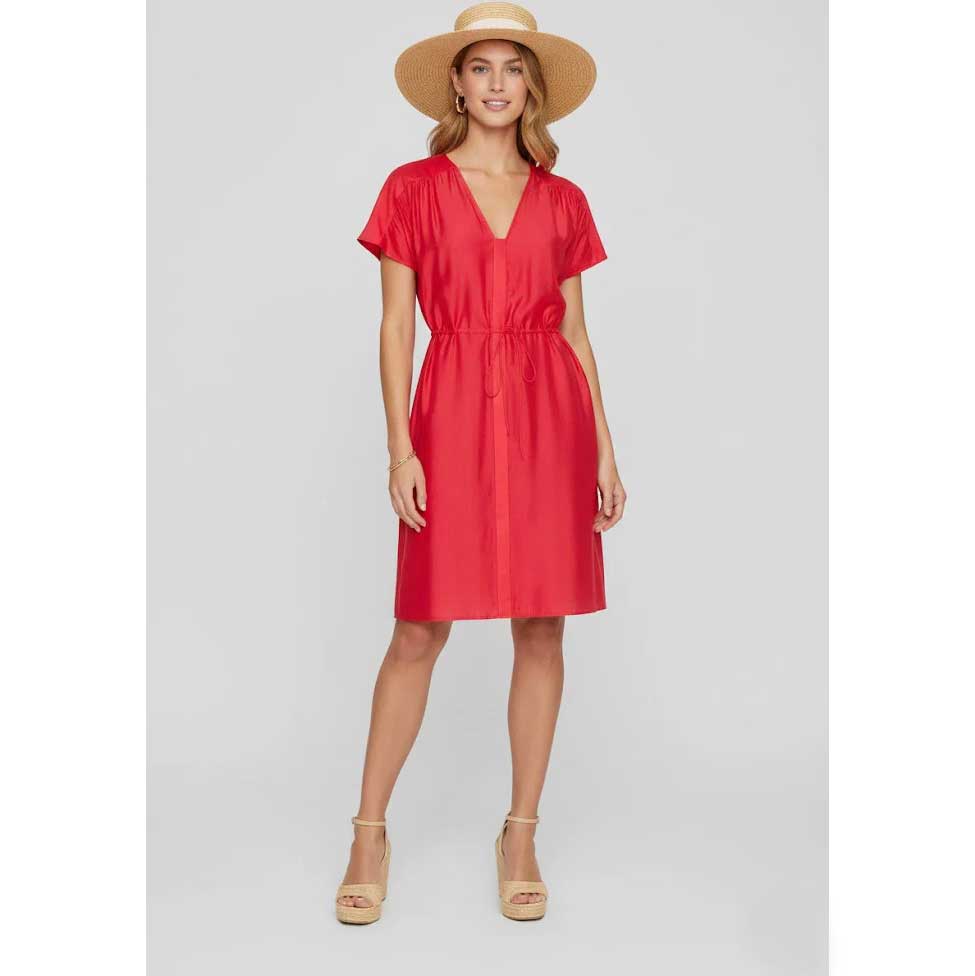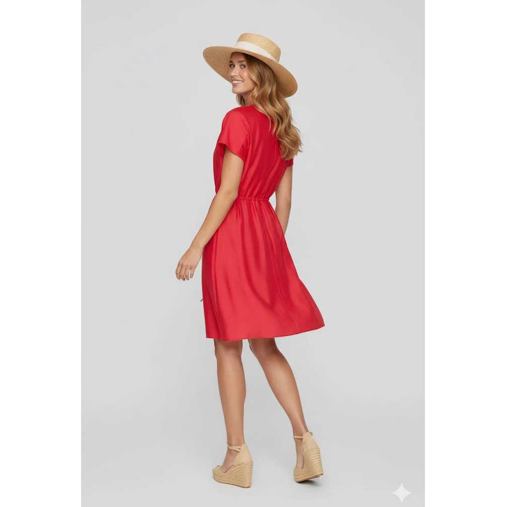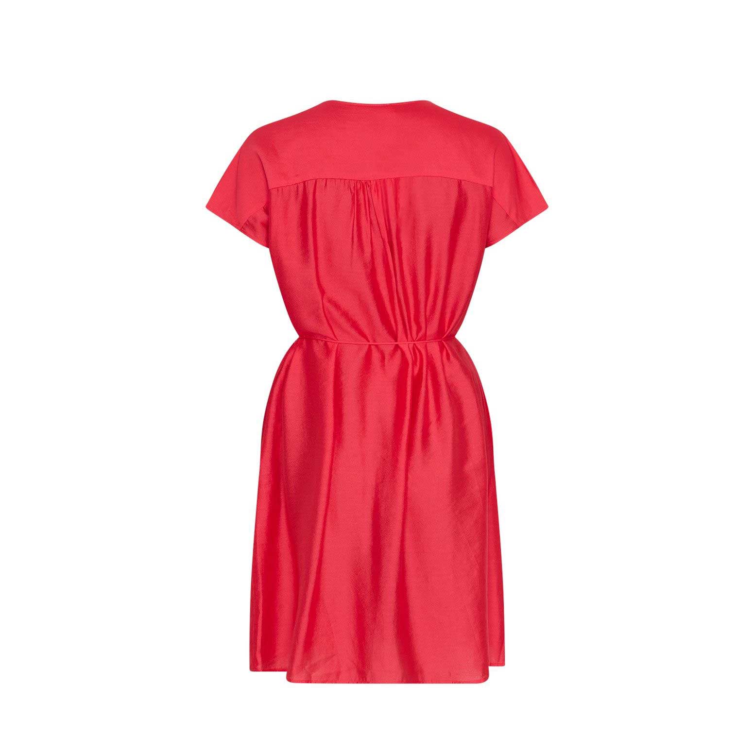 Das Moss Copenhagen Midi-Kleid Rose Red namens Dakota gibt es in 3 Größen: XS, S und M. Mit seiner atemberaubend intensiven Farbe ist ein garantierter Eye-Catcher. Hinzu kommen Raffungen und die Schnürung in der Taille. Sie sorgen für einen leicht verspielten, aber vor allem femininen Look. Wenn du nach einem Kleid suchst, das deinen Kleiderschrank im Nu auflockert, liegst du mit diesem Piece goldrichtig.