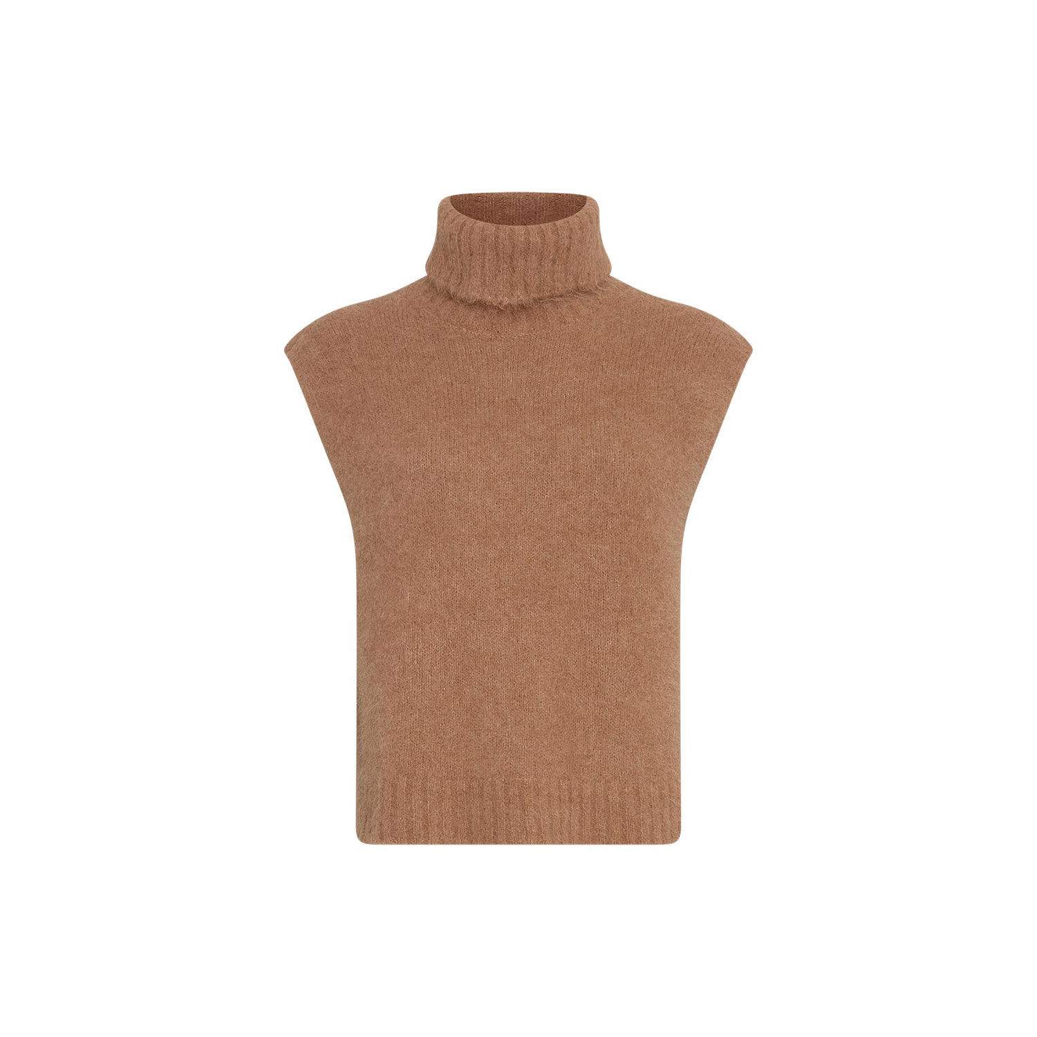 Die Moss Copenhagen Weste Toasted Coconut namens Thira Salmia gibt es in 3 Größen (XS-S, S-M, M-L). Du kannst sie super zu Hosen wie auch Röcken, mit Sneakern und Boots tragen. Dank des Rollkragens kannst du dich richtig einkuscheln und bist trotzdem perfekt gestylt für den Tag! Der Stoff ist kuschelweich, sodass du den Pullunder eigentlich gar nicht mehr ausziehen willst. Das warme, an Karamell erinnernde Braun macht ihn zu einem tollen Kleidungsstück für den Herbst.