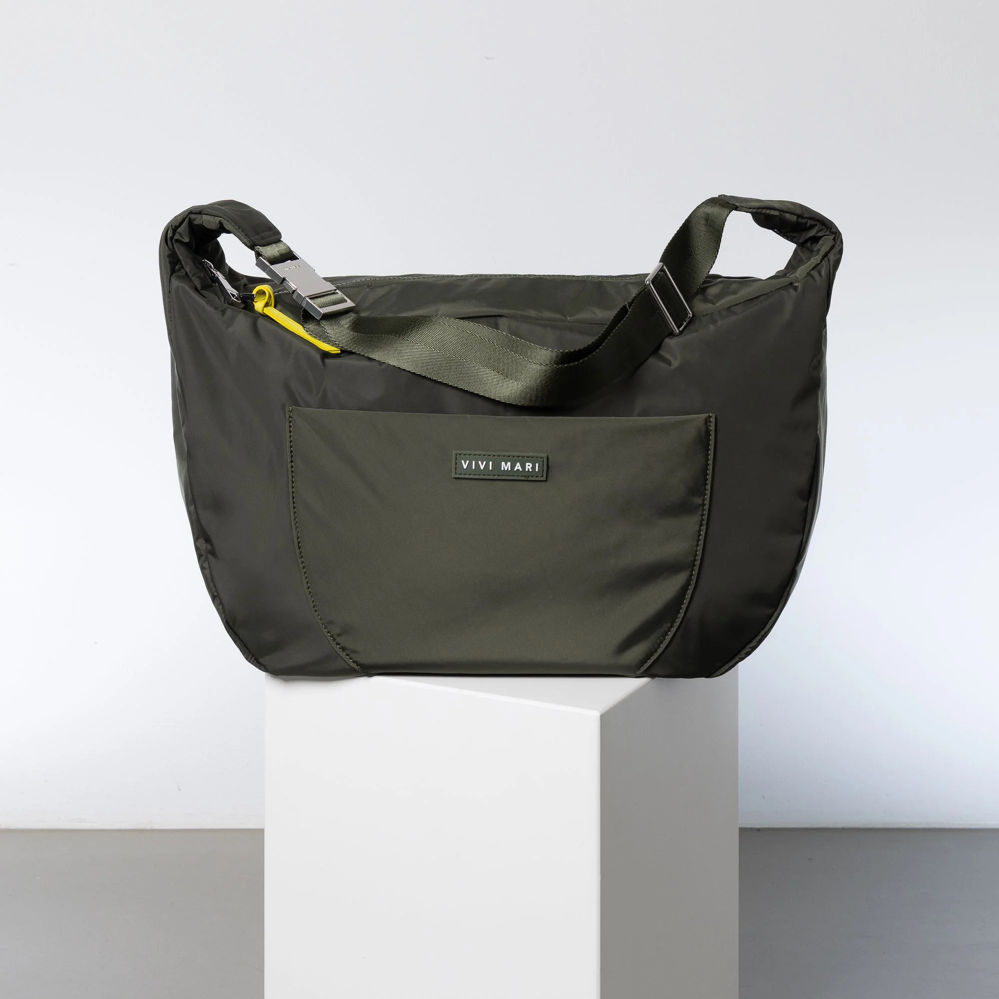 Superleicht, supercool und superpraktisch! Und jetzt auch in groß: Die VIVI MARI Padded Hip Bag Oversized Olive ist dein Begleiter im Alltag. Vor allem dann, wenn mehr als nur eine Entdeckungsrunde durch die City ansteht. Ob Shopping-Trip, Workout im Fitnessstudio oder Familienausflug (Wickeltasche). Hier ist mehr als genug Platz. Sodass neben den Essentials wie Smartphone, Portmonee, Schlüssel & Co. auch Einkäufe, Regencape, Sportkleidung und mehr verstaut werden können.