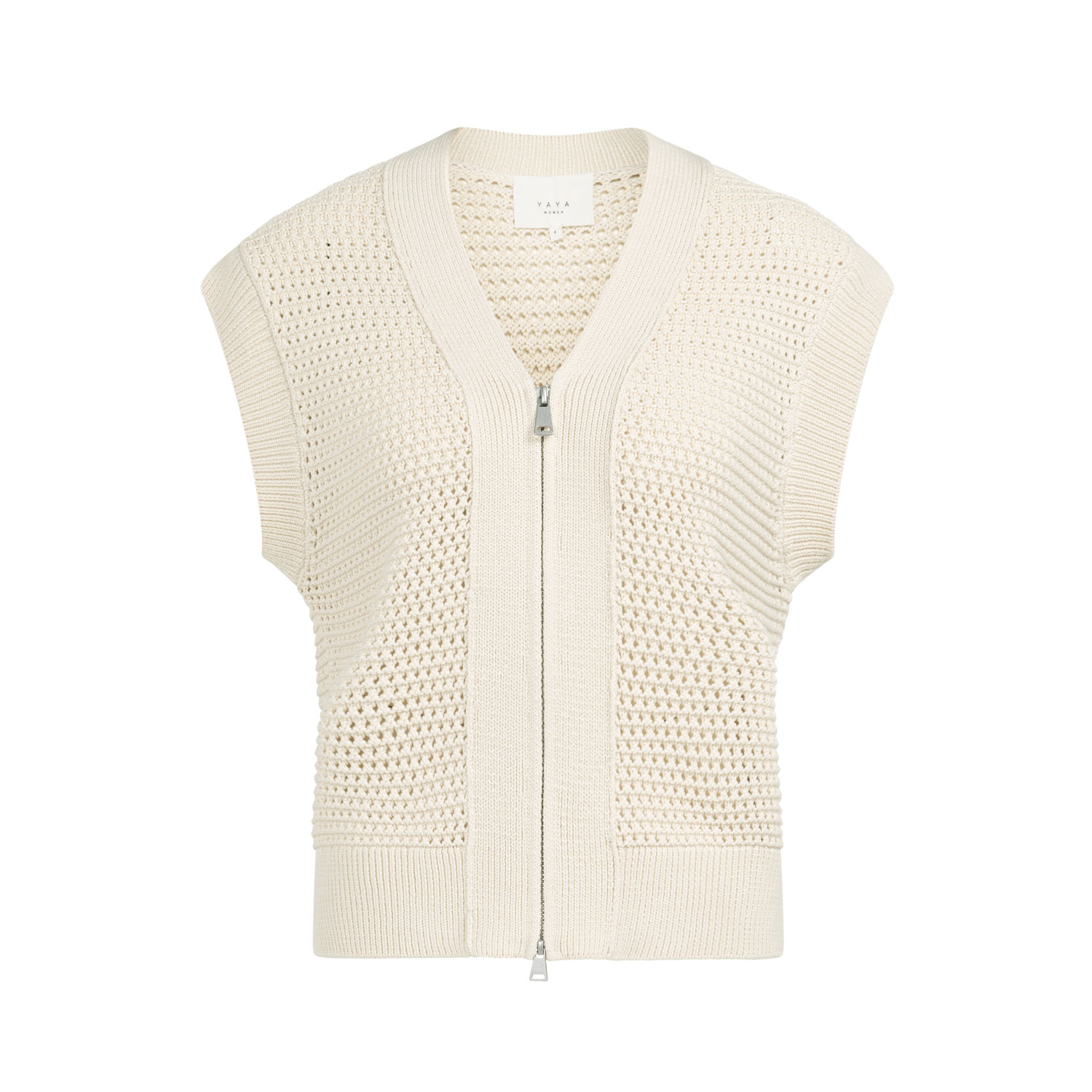 YAYA ärmelloser Cardigan mit Reißverschluss Creme Beige