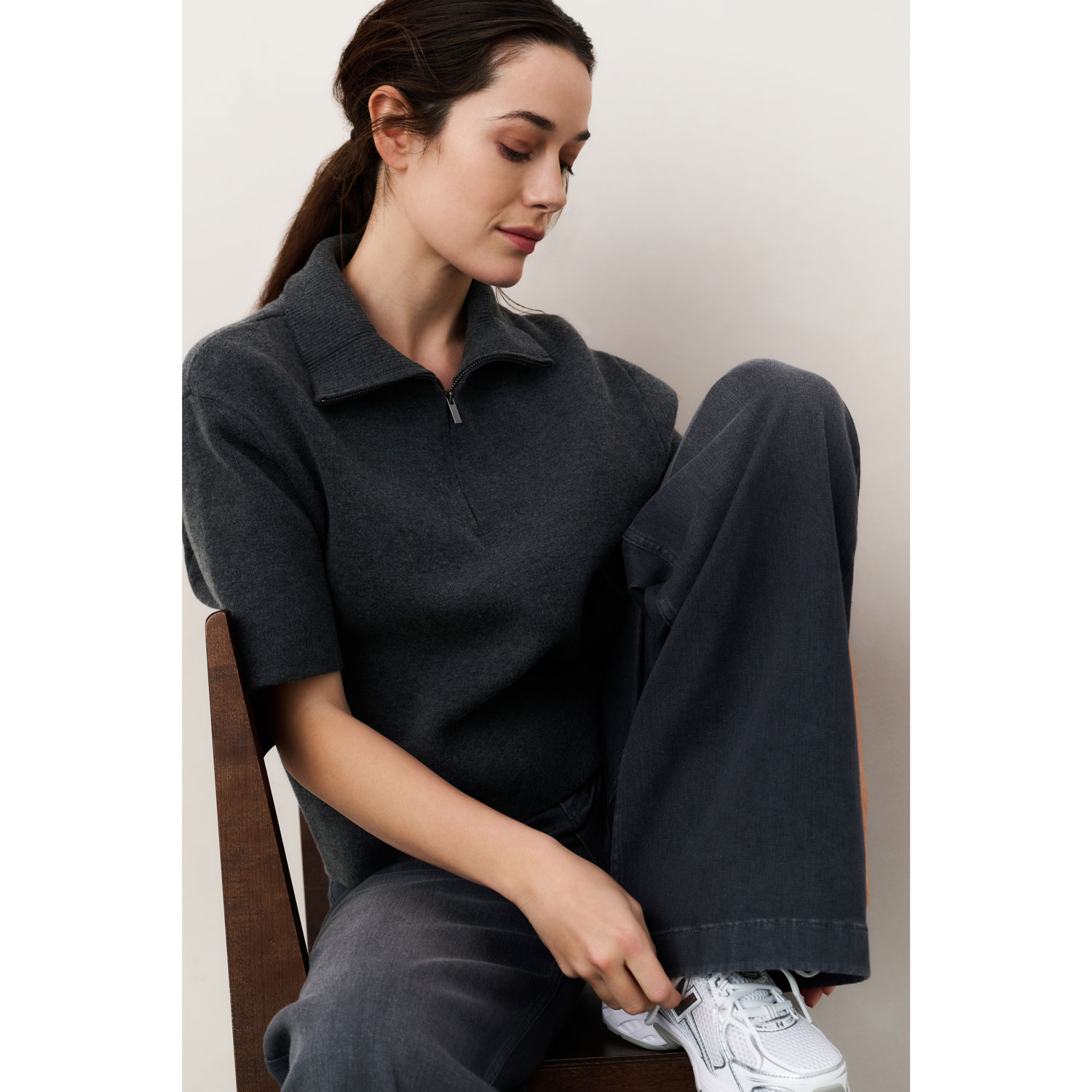 Der YAYA Kurzarm-Pullover Anthracite ist in 4 verschiedenen Größen verfügbar: XS, S, M und L. Entdecke den perfekten Mix aus modischem Design und unschlagbarem Komfort mit unserem Kurzarm Pullover. Dieser Sweater ist der ideale Begleiter für den modernen Alltag und lässt sich sowohl für entspannte als auch für schickere Anlässe hervorragend stylen. Ob im Büro, beim Treffen mit Freunden oder in der Freizeit – der Pullover ist ein echtes Allround-Talent, das in keinem Kleiderschrank fehlen sollte. Er überzeugt durch sein minimalistisches Design, das durch den Reißverschluss am Kragen einen modernen Twist erhält. In Kombination mit der schlichten Farbe wirkt der Sweater sowohl klassisch als auch trendbewusst – ein Piece, das nie aus der Mode kommt und sich vielseitig kombinieren lässt.