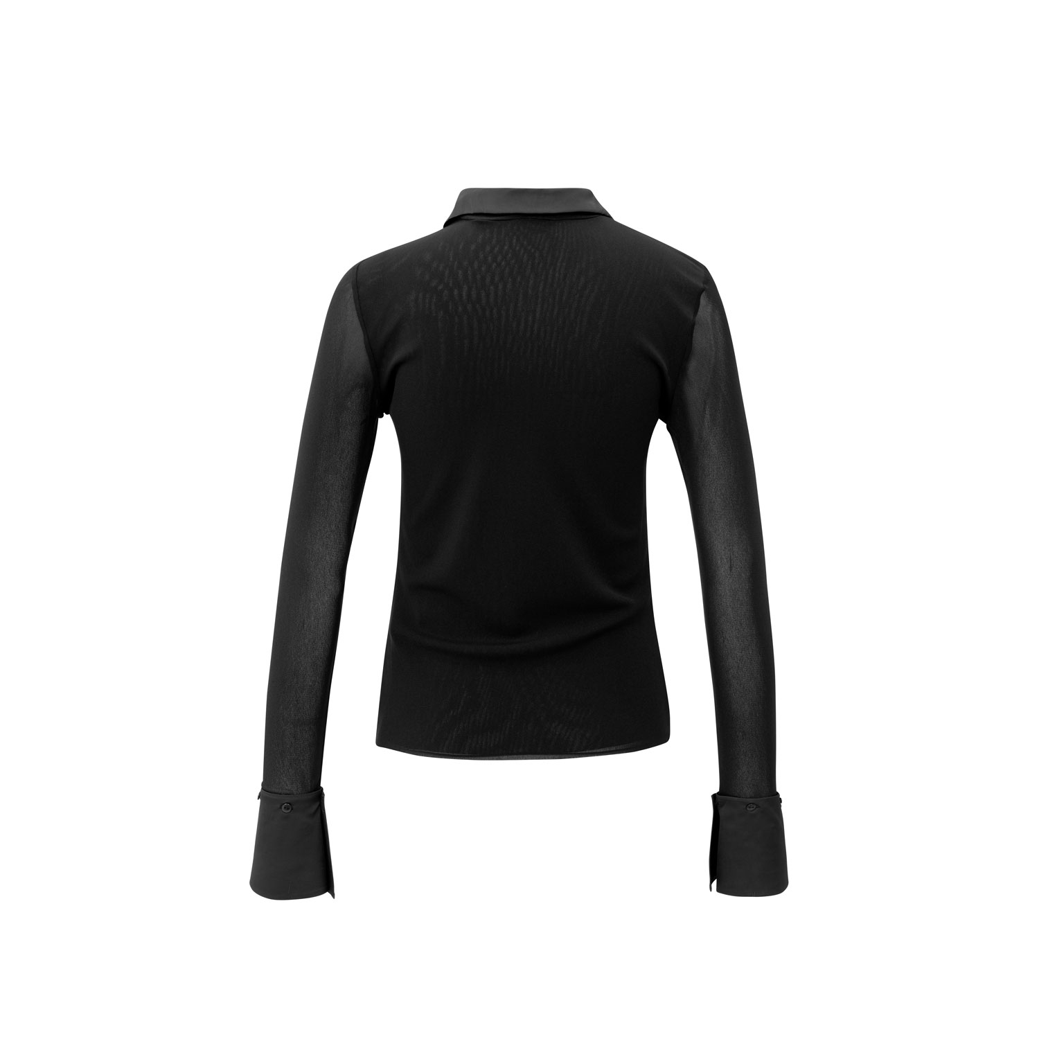 YAYA Mesh-Langarmshirt Black – abnehmbare Manschetten