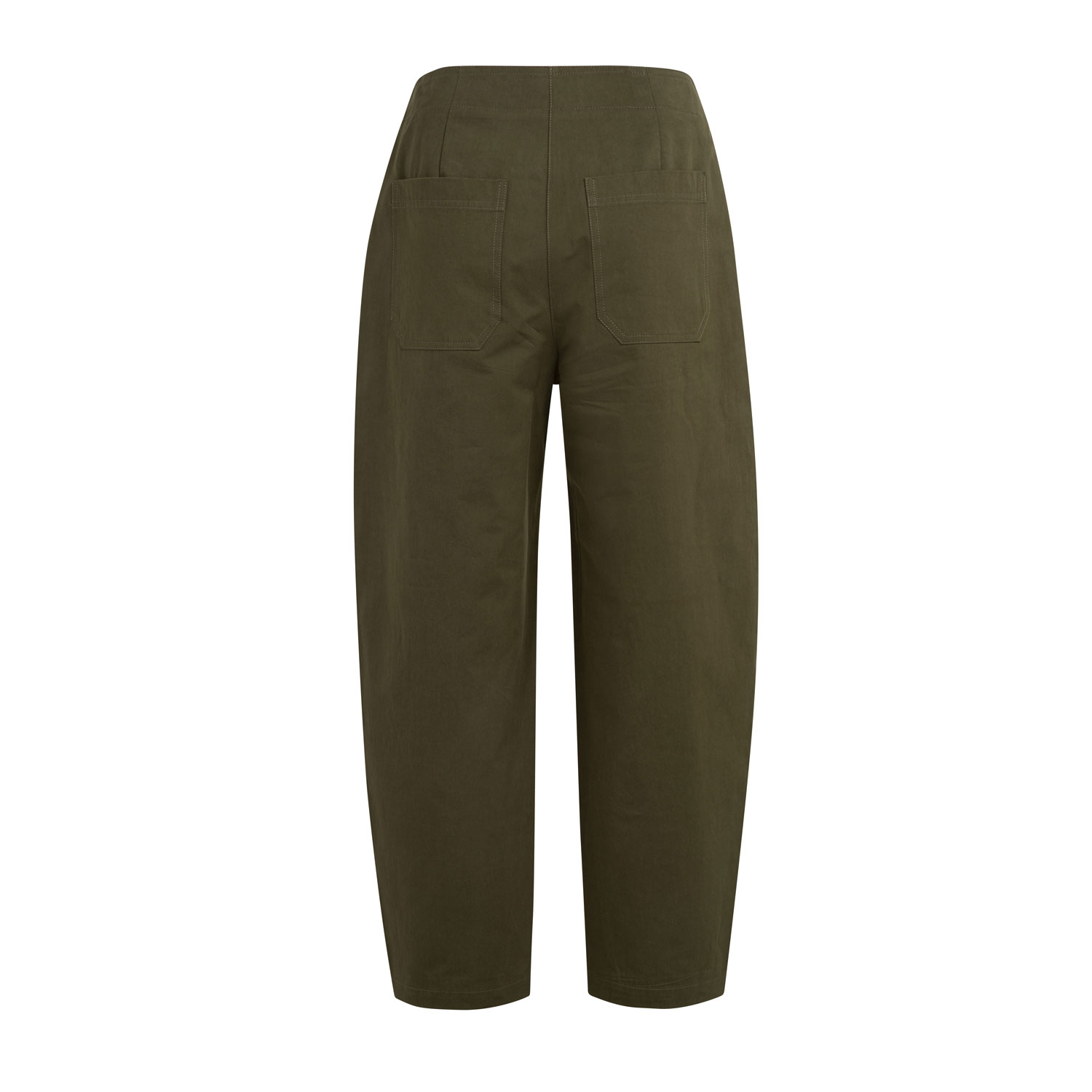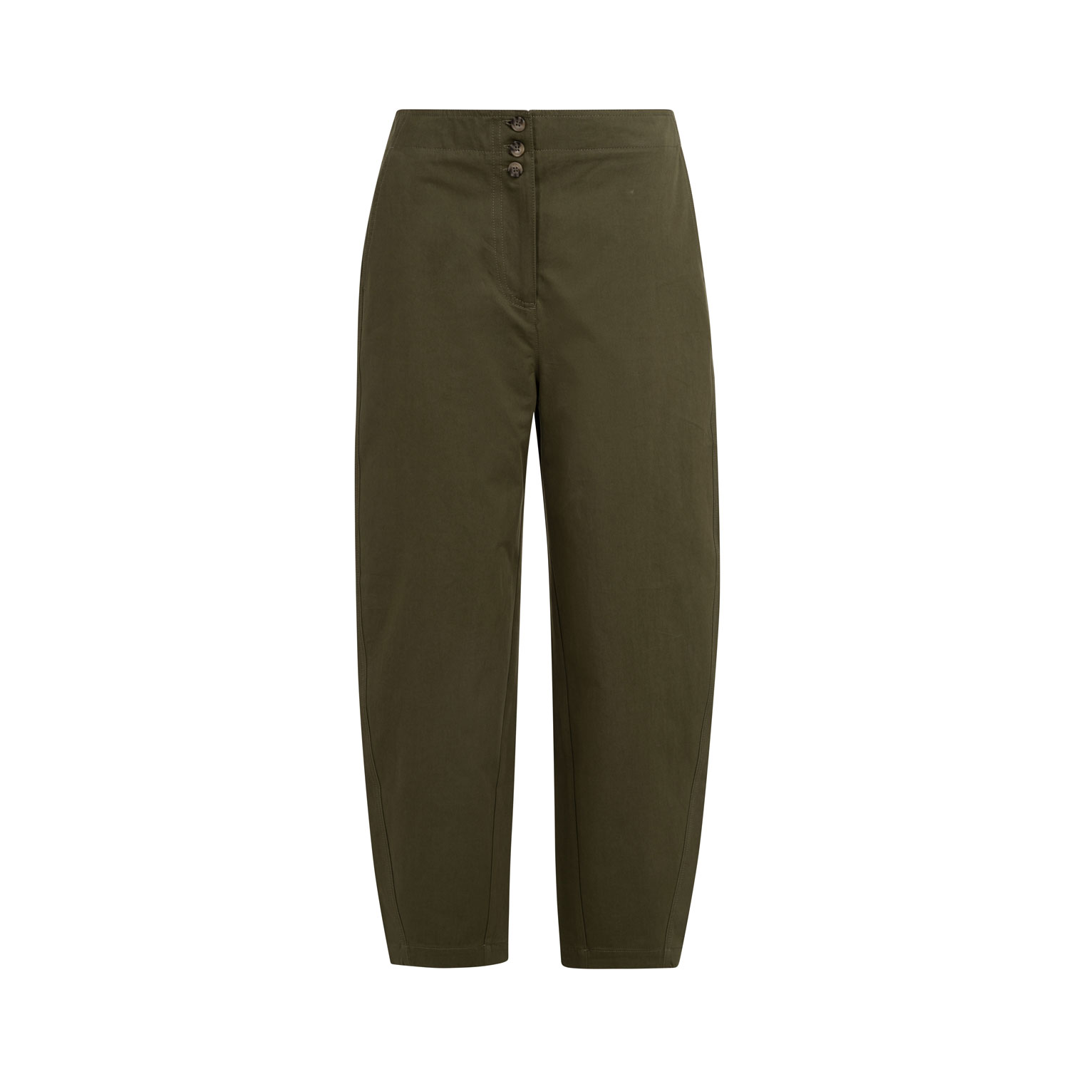Die YAYA Stoffhose Barrel Army Green gibt es in 4 verschiedenen Größen: 34, 36, 38 und 40.